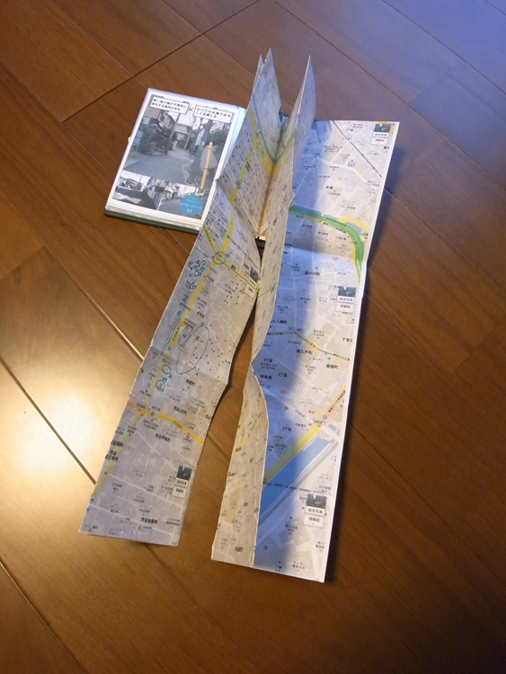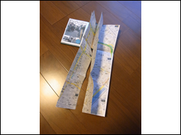 そのひとたちにとっては,まずは型ことばをつくった他者の視点で,まちを歩いて観るわけです(図の3).歩くための房具として,型ことばと地図をコンパクトに束ねる「まち観房具」(写真参照)も手作りでつくりました.他者の視点で歩くうちに,自分オリジナルの型ことばをみつけるかもしれません(図4).